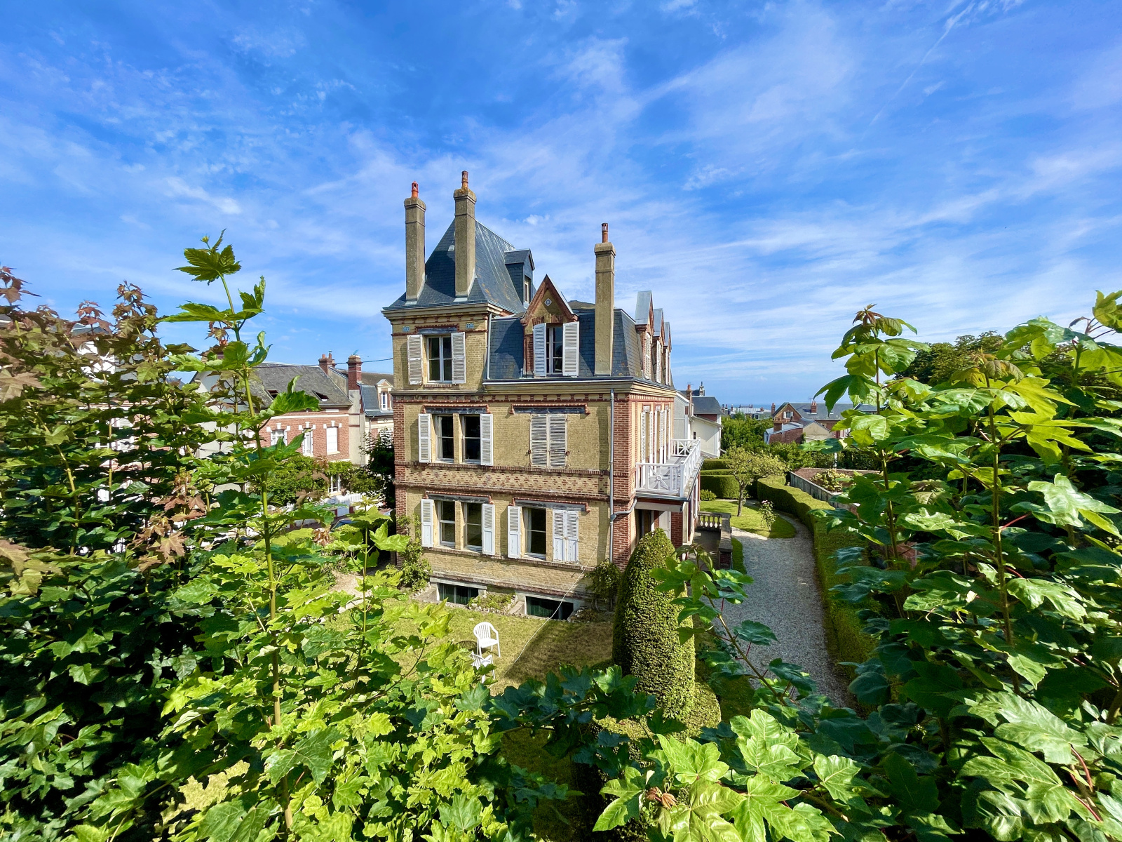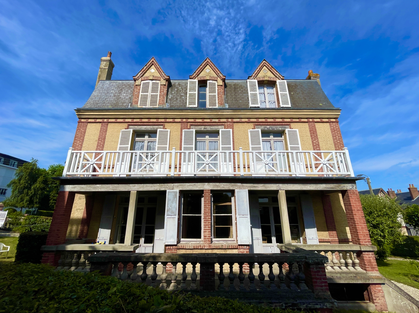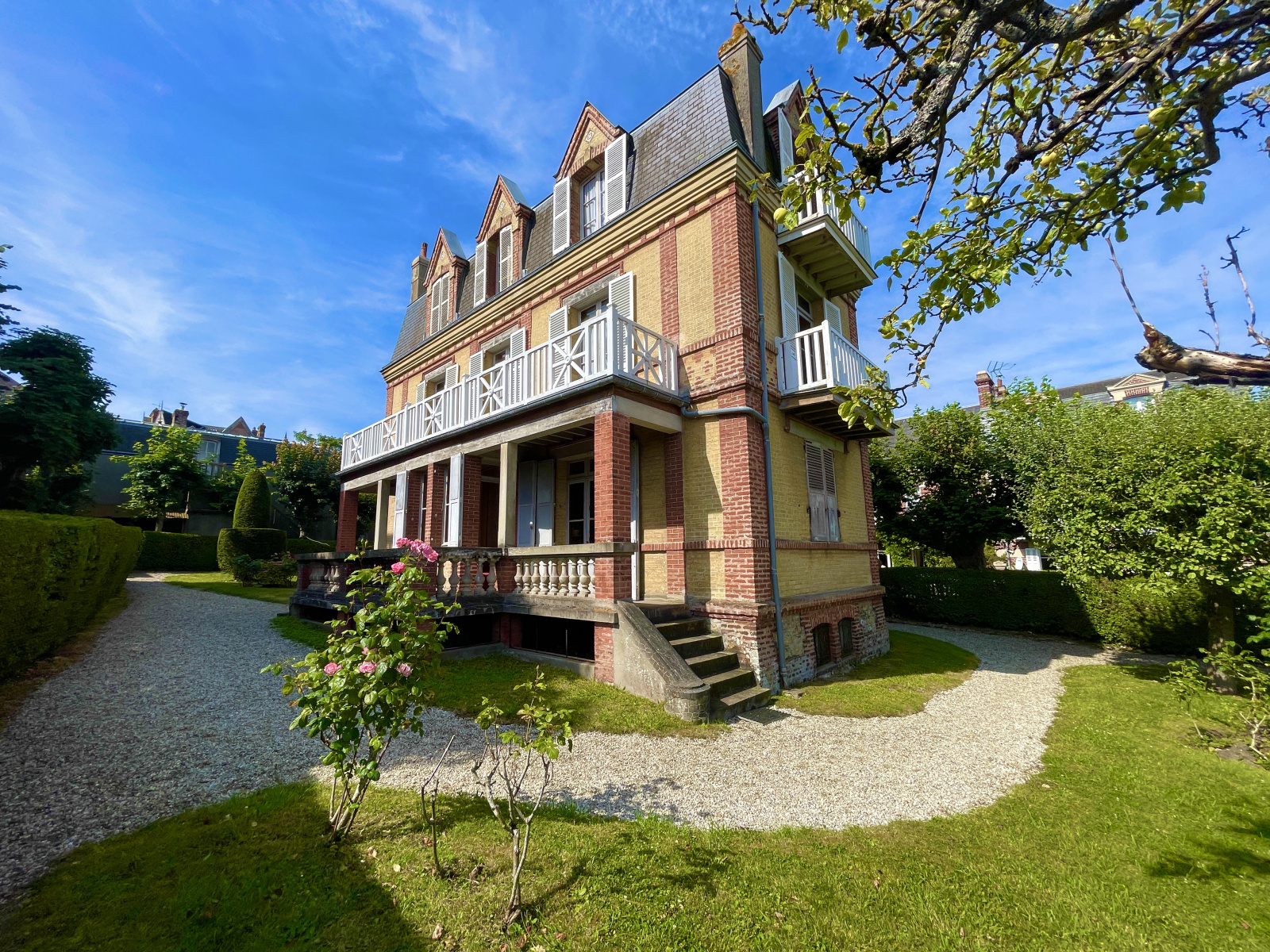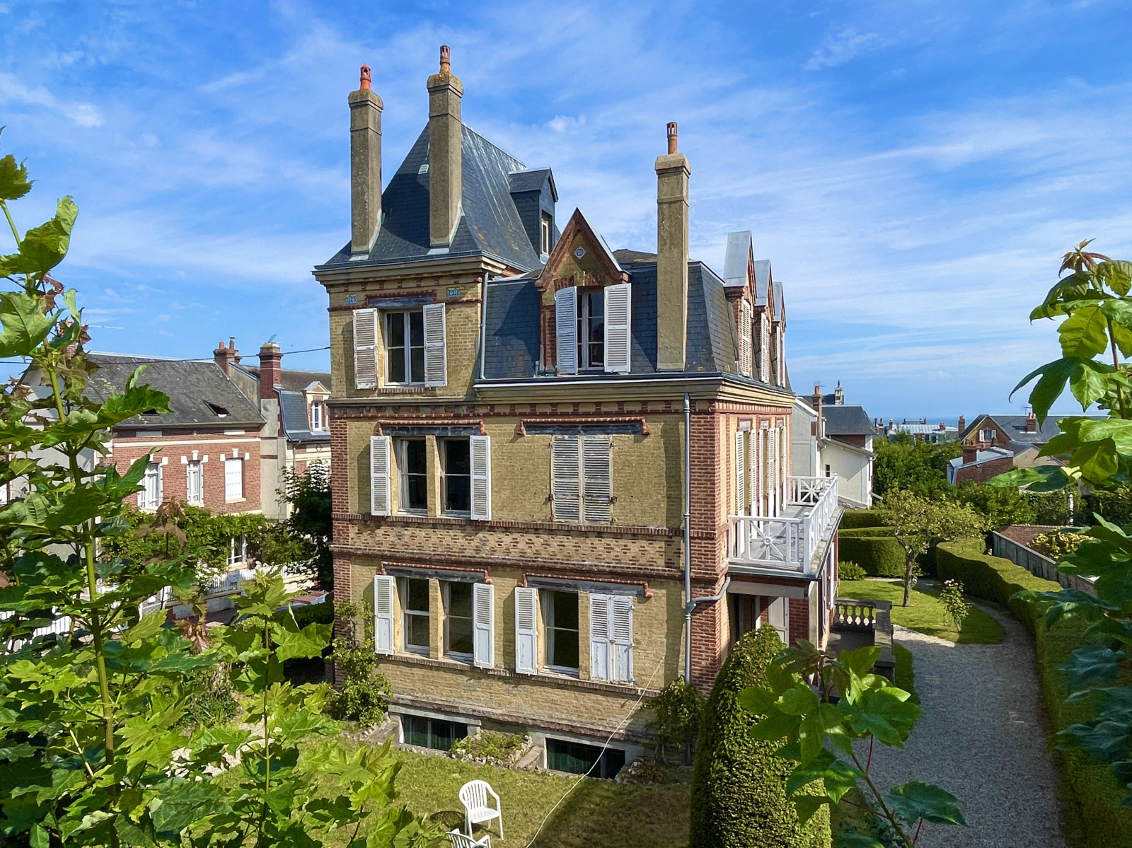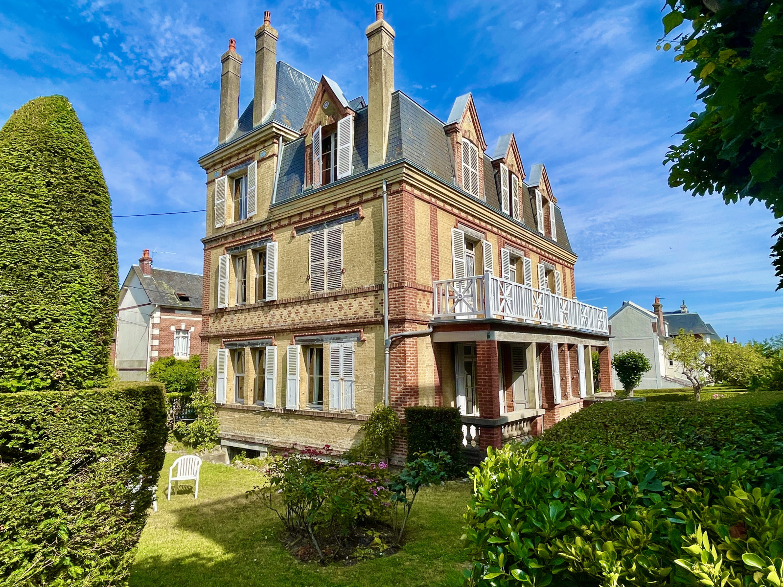 Villers-sur-Mer (14640)XXX VENDU EN OFF MARKET XXX XXXX EXCLUSIVITE NORMANDY IMMOBILIER VILLERS-SUR-MER XXXX Au cœur du centre-ville de Villers-sur-Mer, à quelques mètres de la rue piétonne et à 250 m de la plage, Vincent PERLEMOINE ENGERRAN vous propose une authentique Villa d'Architecture Balnéaire XIXème d'environ 300 m2 sur quatre niveaux comprenant 14 pièces et 6 chambres. Belle entrée, grand séjour salon avec cheminée, salle à manger et cusine indépéndante. Au premier niveau, un palier distribue trois chambres avec terrasse et salle d'eau. Au second étage, un palier dessert quatre chambres, dont une vue mer. Au dernier étage, deux autres chambres. Rez-de-sol complet de 80 m2 avec accès jardin. En dépendance, garage double avec logement de gardien 3 pièces. Majestueux ensemble bénéficiant d'un emplacement numéro 1. TRÈS RARE ! Première mutation depuis 1943 !