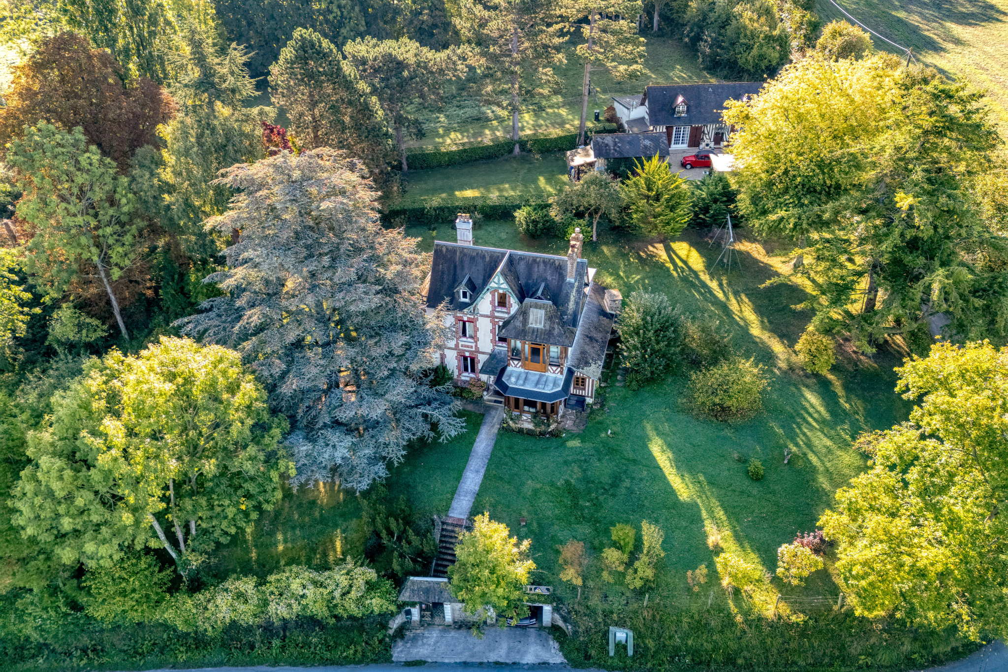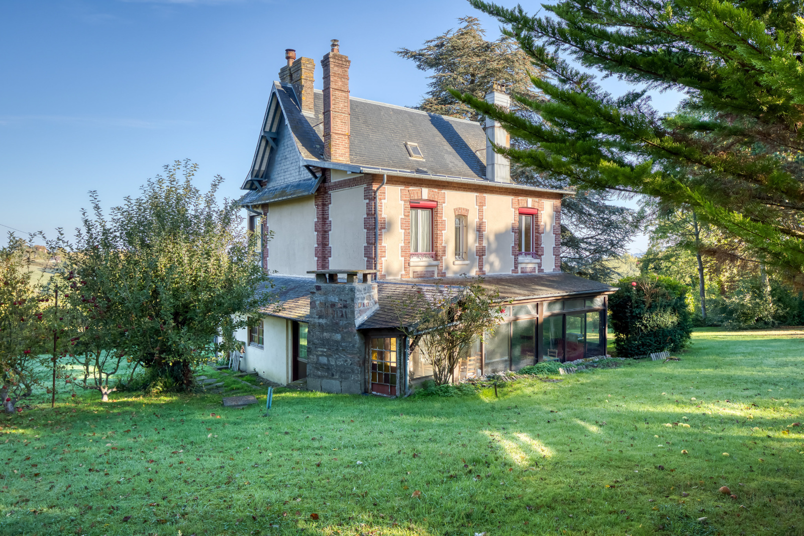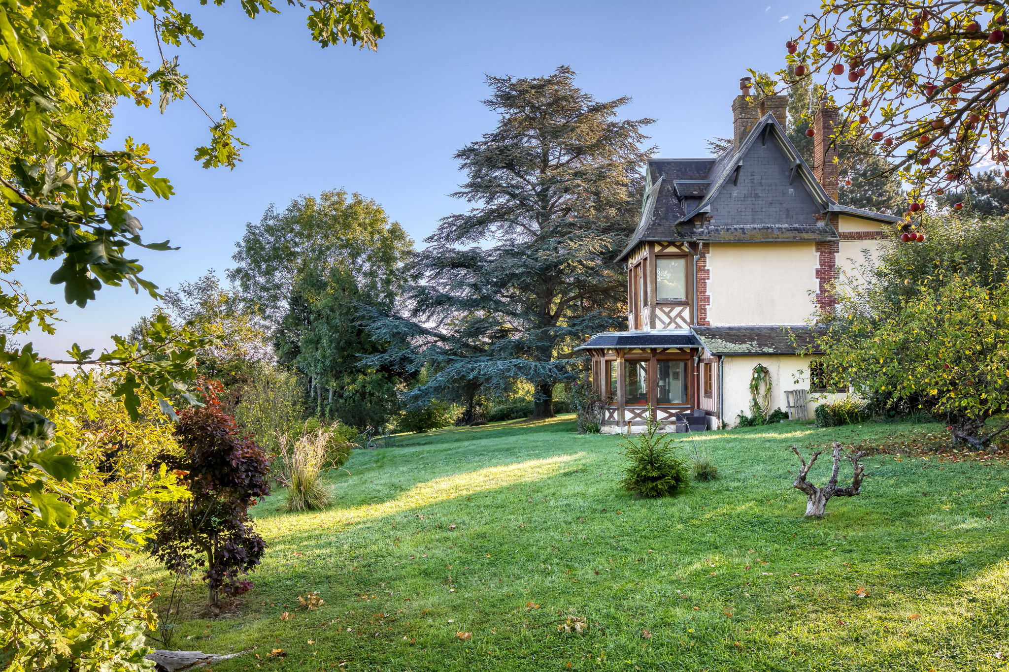 Idéalement située entre mer et campagne, cette propriété unique incarne le raffinement normand dans toute son authenticité Édifiée sur un majestueux terrain de 3500 m2, elle offre environ 155m2 comprenant 5 chambres lumineuses et de généreux espaces de réception.
