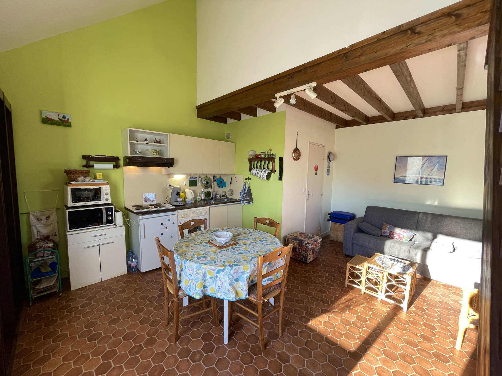 Villers-sur-Mer (14640)XXX EXCLUSIVITE NORMANDY IMMOBILIER VILLERS-SUR-MER XXX PROCHE CENTRE-VILLE Au calme, au sein d'une petite copropriété recherchée de 8 lots, véritable coup de cœur pour cet appartement 2 pièces en duplex de 36 m2 bénéficiant d'une grande terrasse exposée SUD de 10 m2. À l'abri des regards, l'appartement s'accède par un escalier indépendant et comprend : un beau séjour salon avec cuisine US, une salle de bains avec WC. À l'étage, grande chambre indépendante de 10,75m2. Beaux volumes et très belle hauteur sous plafond. Terrasse plein Sud de 10 m2. Parking libre dans la résidence. À visiter sans tarder.
