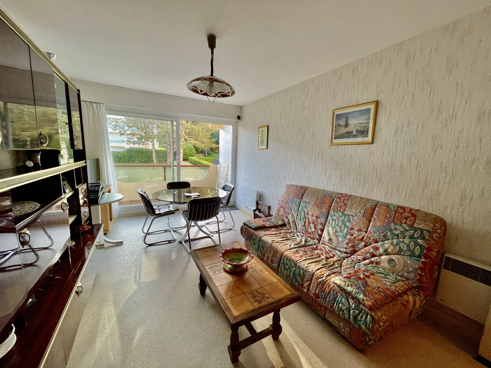 Villers-sur-Mer (14640)XXX VENDU PAR NOS SOINS XXX **** EXCLUSIVITE NORMANDY IMMOBILIER VILLERS-SUR-MER **** Résidence LES MARINES au calme, coup de cœur pour cet appartement 2 pièces "grande formule" de 36 m2 en bon état au premier étage d'une résidence de standing avec gardien. Entrée indépendante, grand séjour ouvrant sur balcon sud-est (porte-fenêtres et volets neufs), cuisine indépendante équipée, dégagement, une belle chambre (fenêtre neuve), salle d'eau avec fenêtre, wc indépendant. Vendu avec parking privatif. Vendu meublé. Belle affaire !