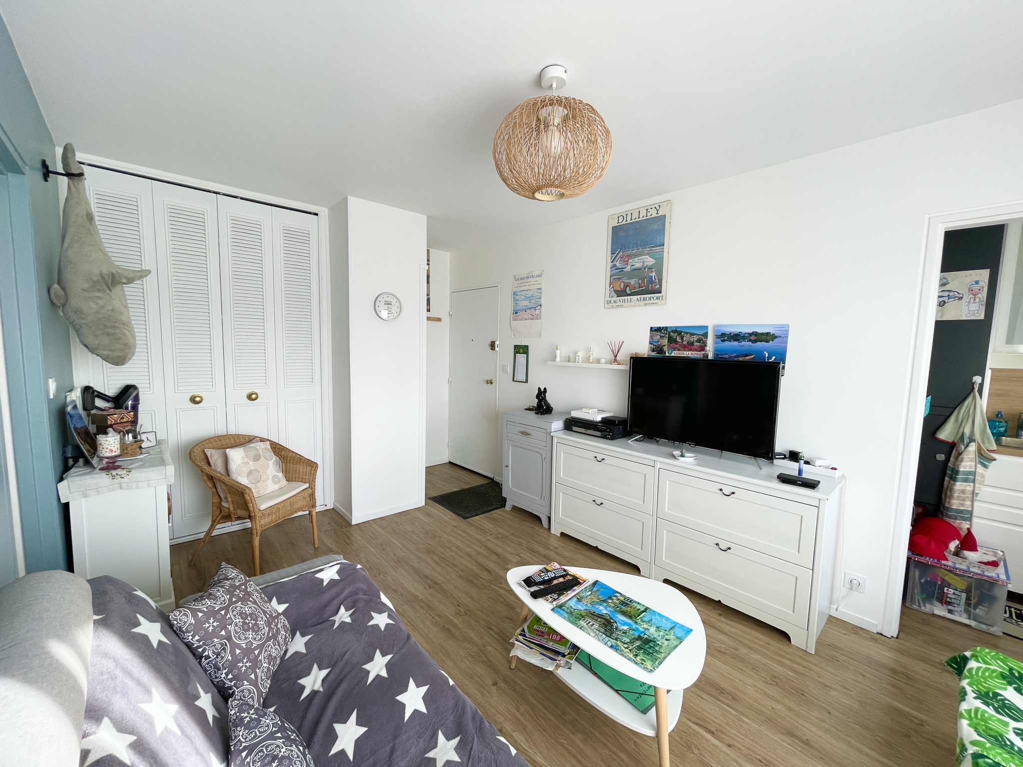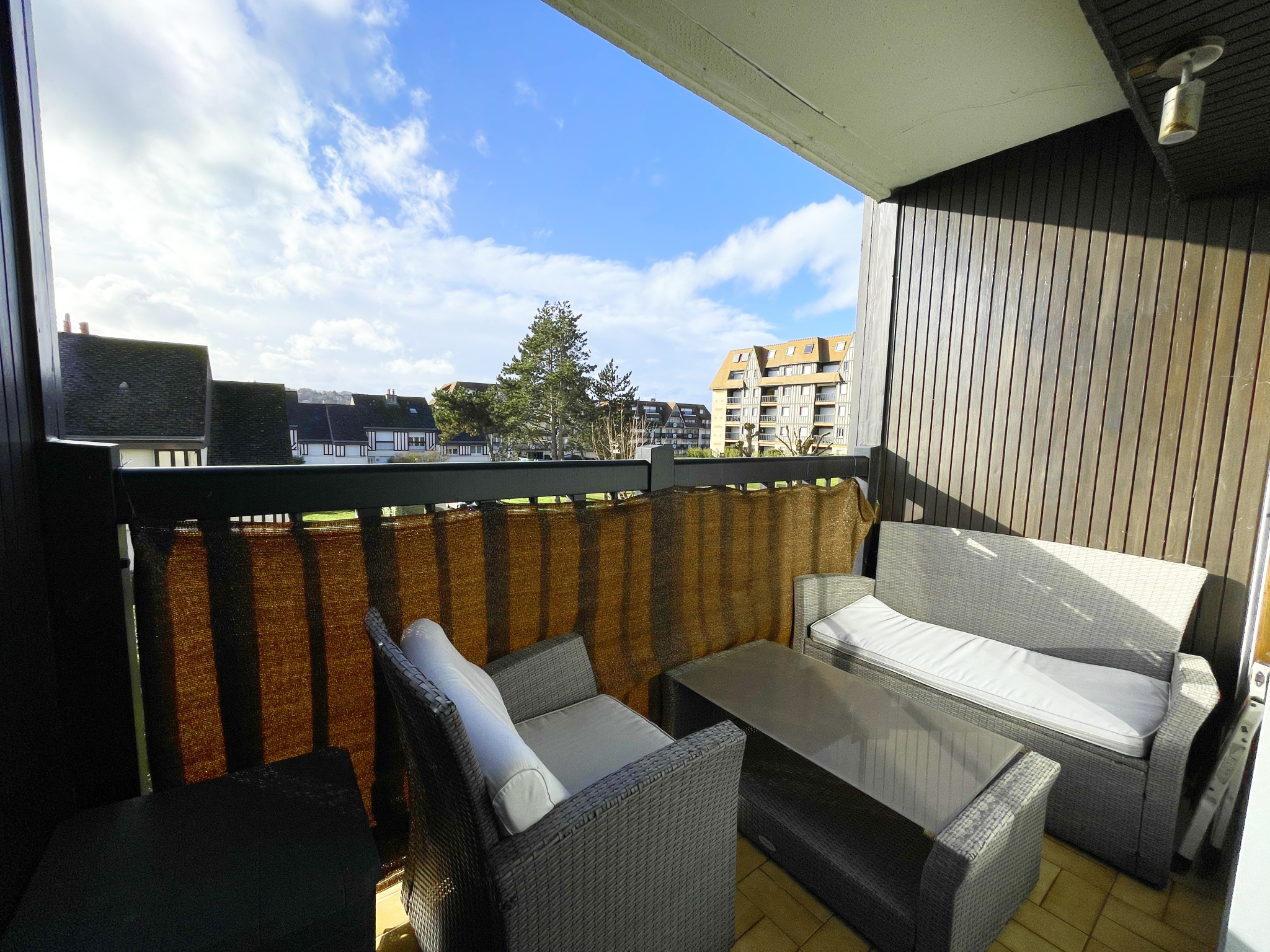 Villers-sur-Mer (14640)XXX EXCLUSIVITE NORMANDY IMMOBILIER VILLERS SUR MER XXX Résidence LA MANCHE, à 50m des commerces et à 150m de la plage, au sein d'une résidence de standing avec gardien impantée sur un parc de plus de 2 hectares, coup de coeur pour cet appartement de standing rénové avec goût développant une superficie de 35m2. entrée indépendante avec placards, séjour salon exposé sud ouest ouvrant sur balcon, cuisine indépendante équipée, dégagement distribuant une belle chambre, salle de bains, wc independant . Fenêtres récentes, électricité récente, rien à prévoir ! Belle affaire . Possibilité de location d'un stationnement en sous sol 35EUR / mois