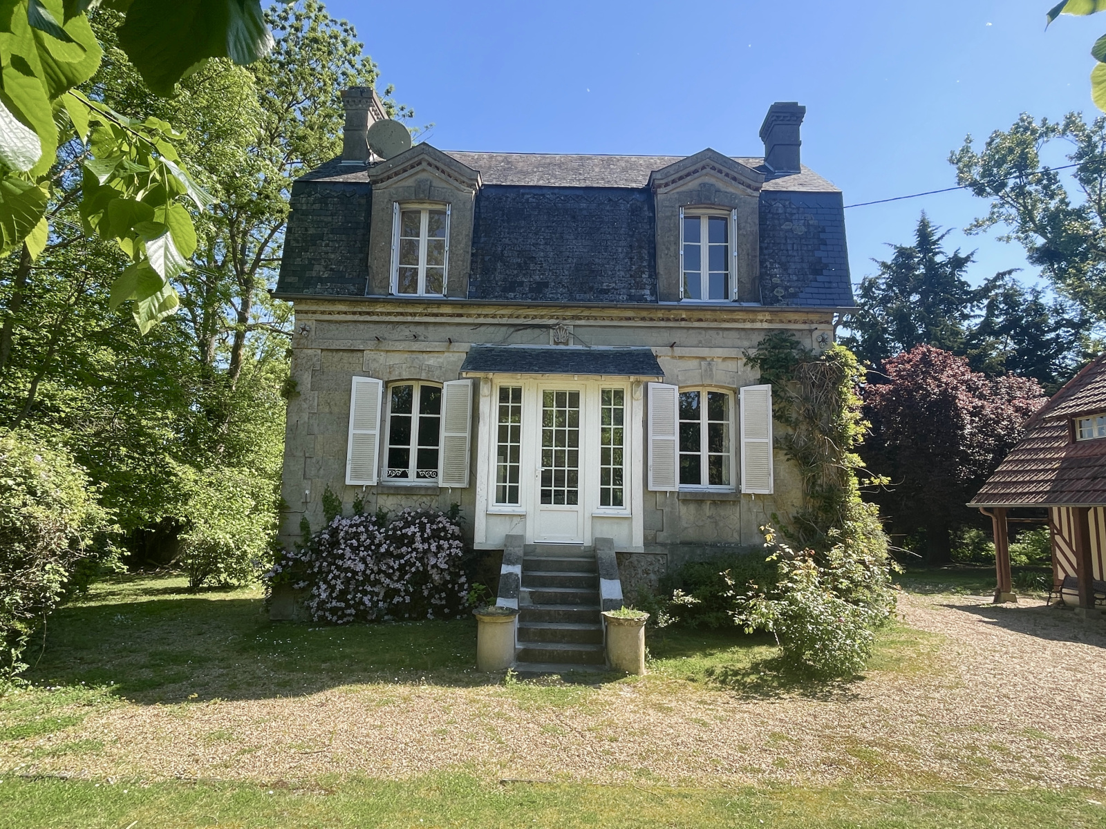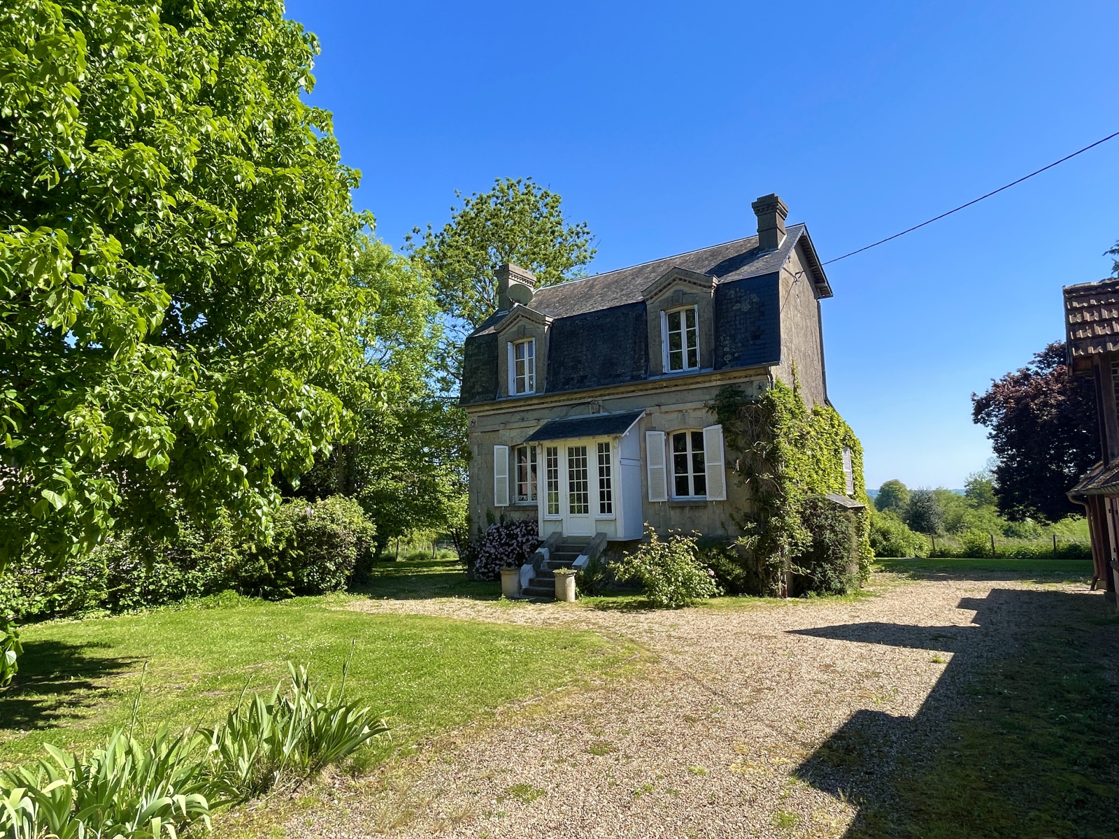 Blonville-sur-Mer (14910)XXX VENDU PAR NOS SOINS XXX **** EXCLUSIVITE NORMANDY IMMOBILIER VILLERS SUR MER***~Vincent PERLEMOINE ENGERRAN vous propose à BLONVILLE SUR MER A seulement 2 kms de la plage, au sein d'un environnement très rercherché calme et verdoyant, véritable coup de coeur pour cette propriété de charme bénéficiant d'une maison d'amis en dépendance. Implantée sur un terrain de 1830m2 avec vue dominante sur la campagne et la mer , la propriété se compose autour d'une maison principale de 100m2 comprenant sgrand séjour parquété de 35m2 exposé ouest avec cheminée, cuisine indépendante, une chambre, WC. A l'étage , deux chambres, salle de bains -wc. Maison d'amis de 60m2 comprenant 3 chambres, salle de bains et wc. Pressoir de 45m2 au sol et garage. Exceptionnel !